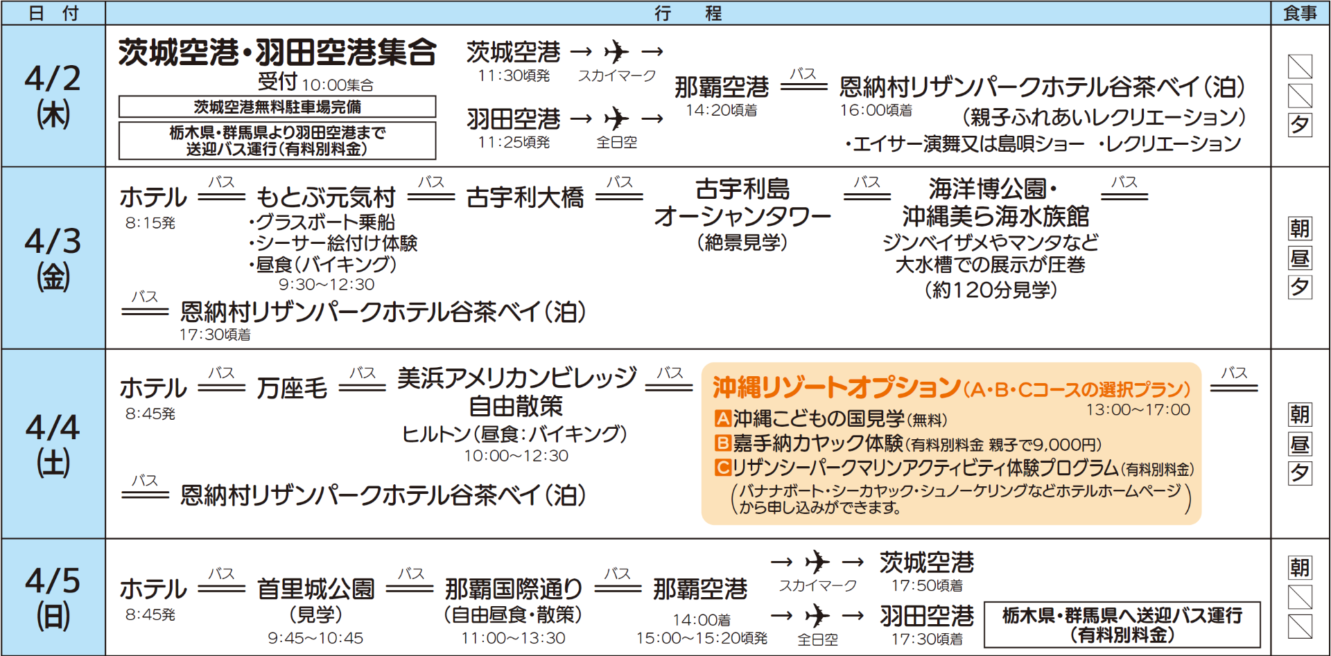沖縄リゾートオプション(A・B・C コースの選択プラン)